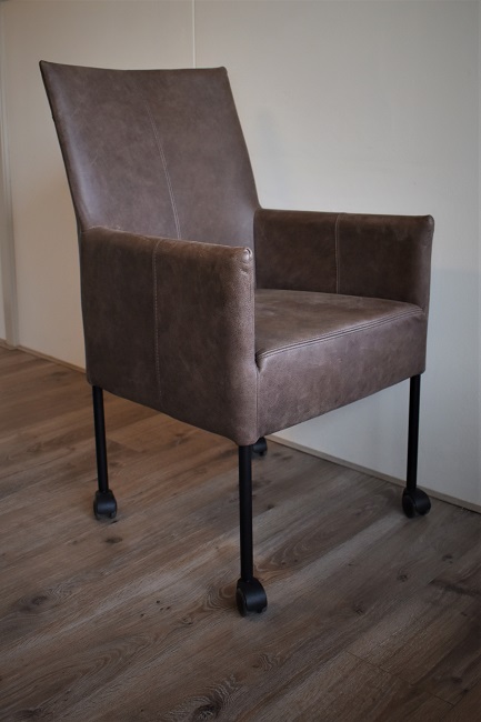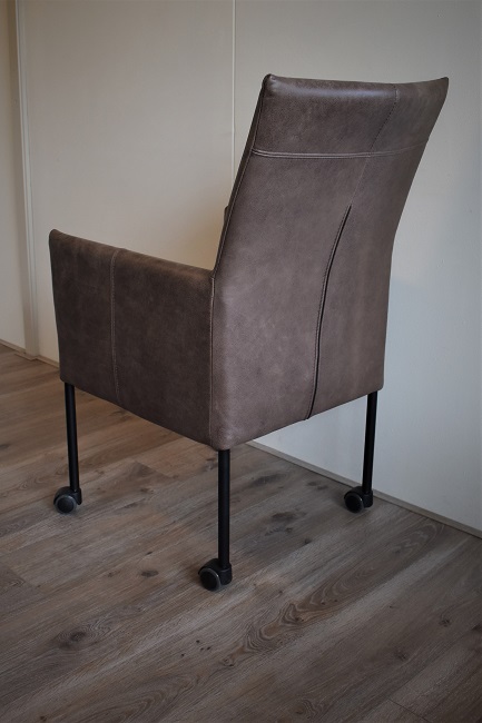 6 eetkamerstoelen Graz met wieltjes en armleuningen in stof Bull Brown van € 1890,- voor € 1190,-