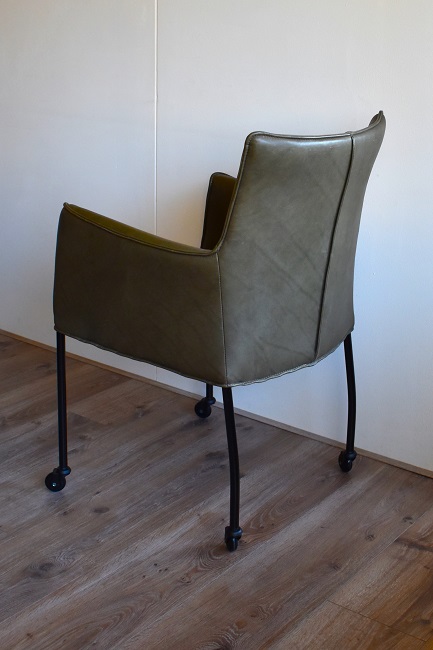 Cabana 1 leren eetkamerstoel van Bree’s New World met skatewielen in donkergroen Gogain leer als laatste showstoel van € 509,- voor € 239, –