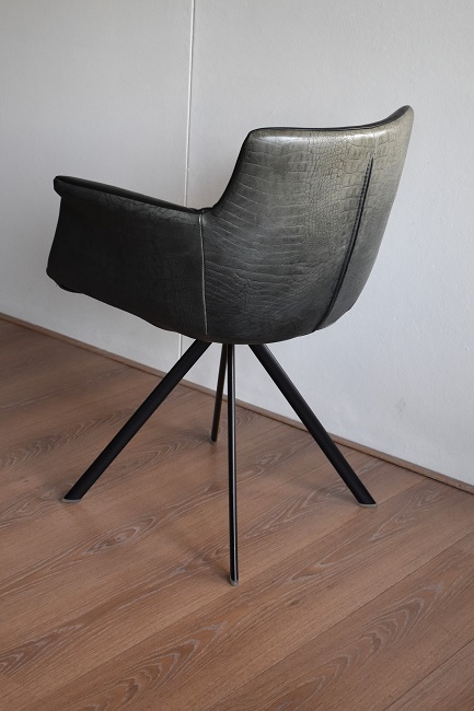 1 Leren kuipstoeltje met draaivoet in zwart leer met grijs Vintage croco leer model Sheriff van € 569,- voor € 295,-