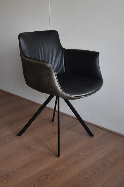 6 draaibare eetkamerstoelen Danillo met memory stand, in duo stoffering van stof met leer, van € 3414, – voor € 2395, –