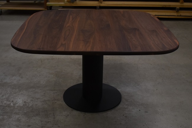 Deens ronde notenhouten eettafel 135 x 135 cm. met zwarte stalen kolompoot model Rovinj € 1795,-