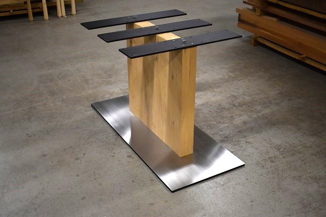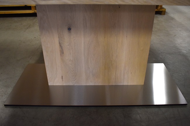 Tafelonderstel met rvs vloerplaat en eiken kolom € 495,-