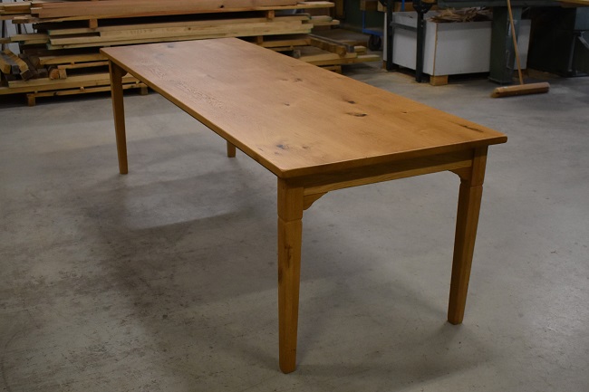 Franse tafel in eikenhout met smalle tafelregel zodat stoelen met armleuningen onder de tafel passen model Toulouse voor € 1795, –