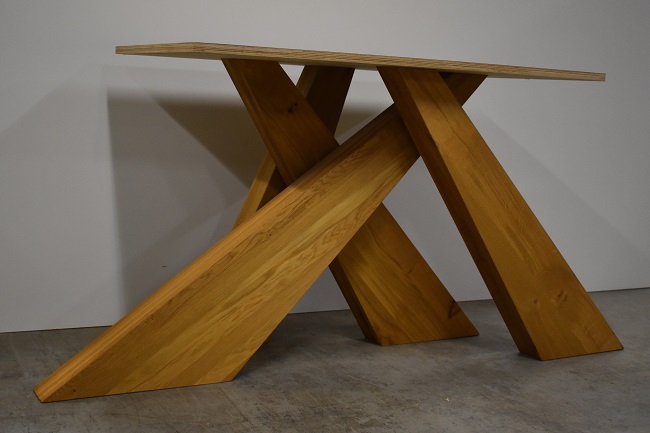 Leverbaar; – In eiken in blanke olie als afgebeeld € 495,- Plaatmaat LxB 100×60 cm. Pootdikte 8,5 cm.